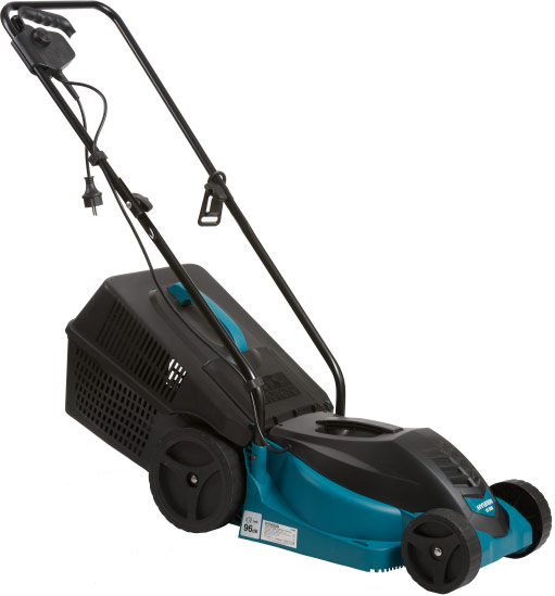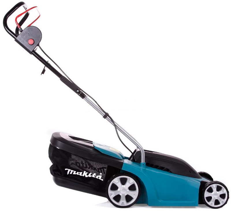 Tondeuse à gazon électrique Makita ELM 4613 avec moteur de 1,8 kW, 2800 tr / min. Le groupe de coupe est capable de tondre une rangée d'une largeur de 46 cm, de traiter à la fois une superficie de 1000 mètres carrés. m. La hauteur de tonte est de 2 à 7,5 cm, il y a 8 niveaux de réglage. Le bac à herbe est souple, avec une capacité de 60 litres.