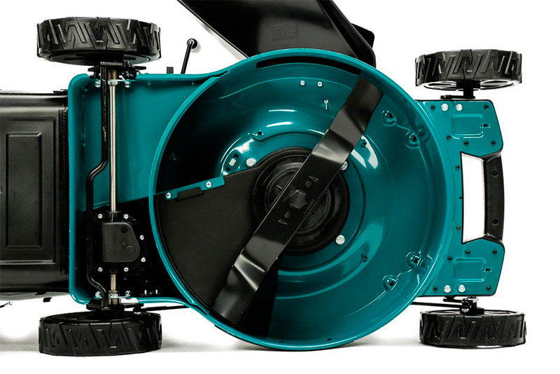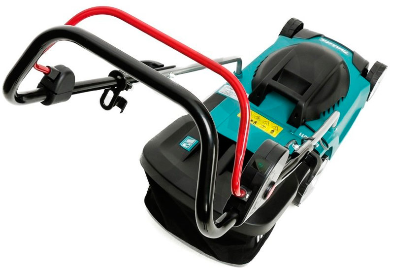 - La hauteur de tonte est très pratique - pour cela, une grande poignée avec une poignée ergonomique est montée sur le côté.