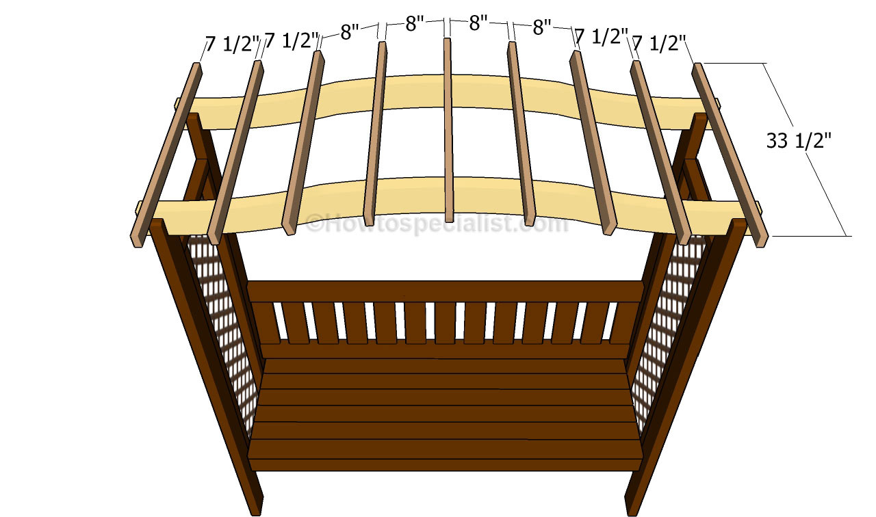 Installation de la partie supérieure de la pergola de banc.
