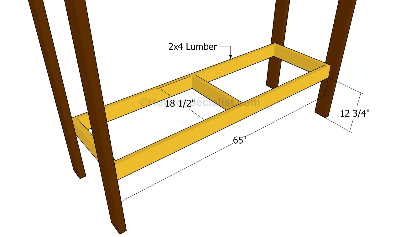 L'étape suivante consiste à fixer le cadre du siège composé de barres de 5 × 10 cm aux supports.Lors de la fabrication du cadre, assurez-vous que tous ses coins sont droits. Pour fixer le cadre aux racks, percez des trous de guidage et vissez des vis de 6 cm. Utilisez un niveau d'alcool pour que vous ne doutiez pas que les supports soient verticaux et que le cadre du siège soit parfaitement horizontal.