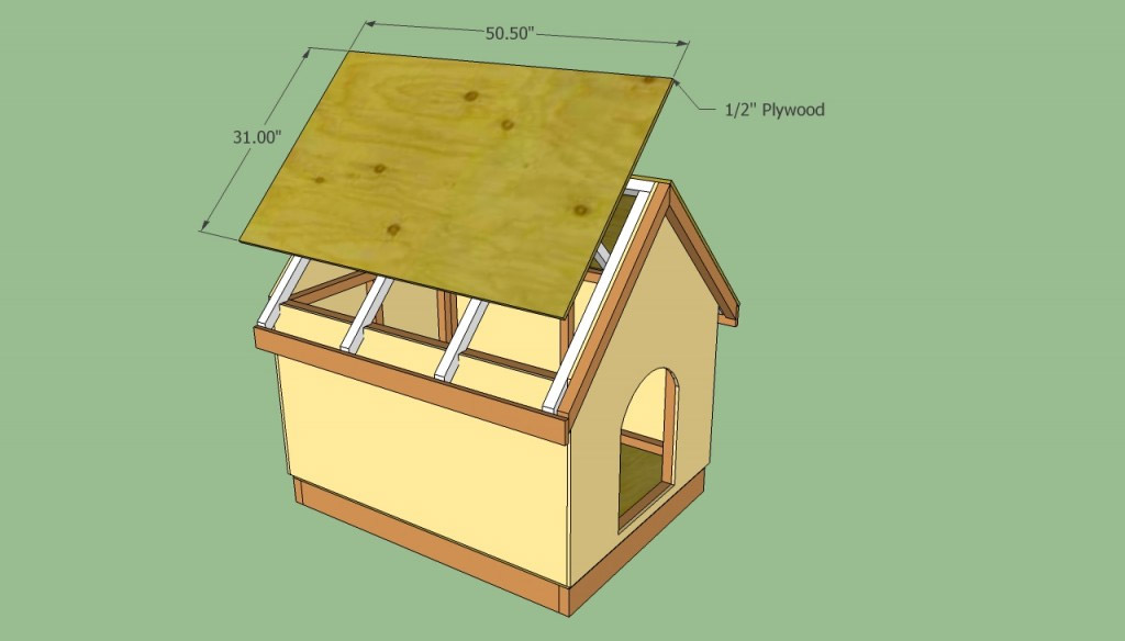 À l'étape suivante, vous devez découper deux feuilles de contreplaqué de 12 mm et les fixer au cadre de toit avec des vis ou des clous de 5 cm tous les 25 cm le long de la crête et des chevrons. Avant de fixer les feuilles de toiture, combinez-les soigneusement.