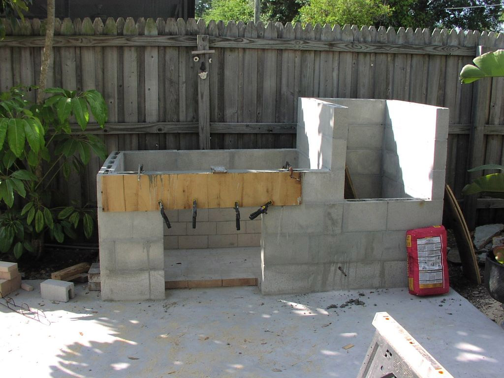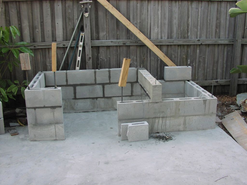 Quand j'allais couler du béton sur la zone pour équiper le patio, je me suis dit, pourquoi ne pas construire un nouveau barbecue en brique en même temps. Je me mis au travail et installai plusieurs raccords sur le site du projet de construction du brasero.