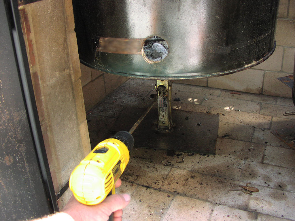 Pour une plus grande résistance aux parties supérieure et inférieure des vérins, de fines plaques métalliques sont soudées. Un récipient en métal, scié à la taille souhaitée, est installé sur les vérins - ce sera une rôtissoire.