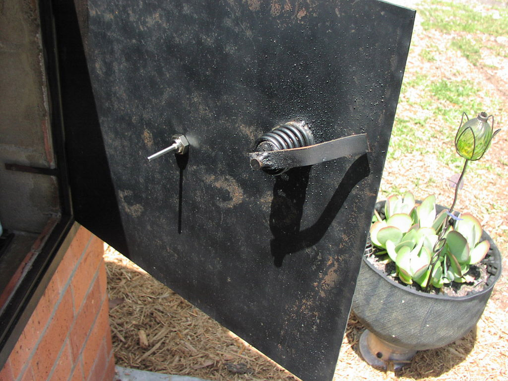 J'ai pris le ressort pour les poignées sur les portes du fumoir et du gril de la selle d'une tondeuse à gazon automotrice (par conséquent, la tondeuse à gazon est maintenant au ralenti dans la grange - elle est capable de tondre l'herbe, mais ce n'est pas aussi pratique qu'auparavant).J'avais besoin de ressorts pour que les poignées fonctionnent correctement. Grâce à eux, les loquets des plaques métalliques incurvées maintiennent les portes bien fermées, ce qui est une bonne nouvelle.J'ai terminé cette étape de travail en installant un beau grand capteur de température facilement lisible.