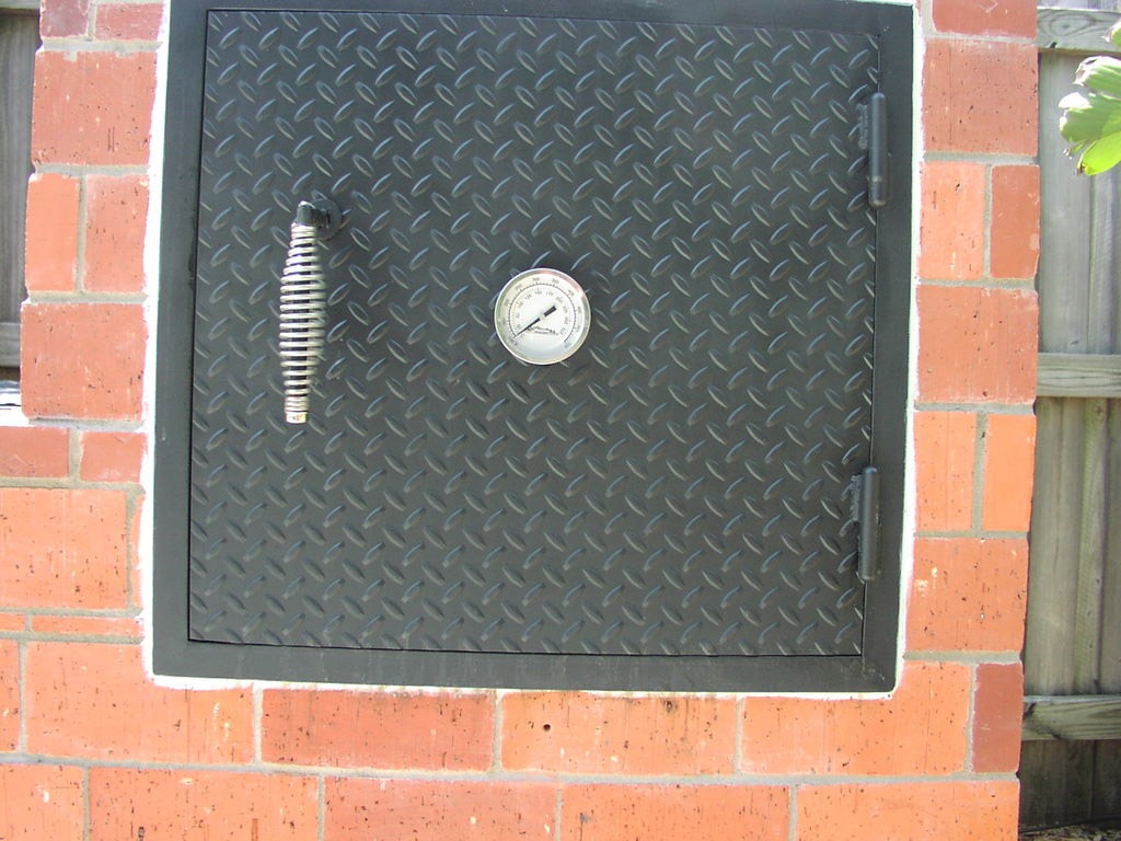 J'ai découpé moi-même les portes du grill et du fumoir de la taille requise. Les couvertures du gril supérieur et le parasol de cheminée ont été réalisés par mes artisans de mon atelier sur ma commande.