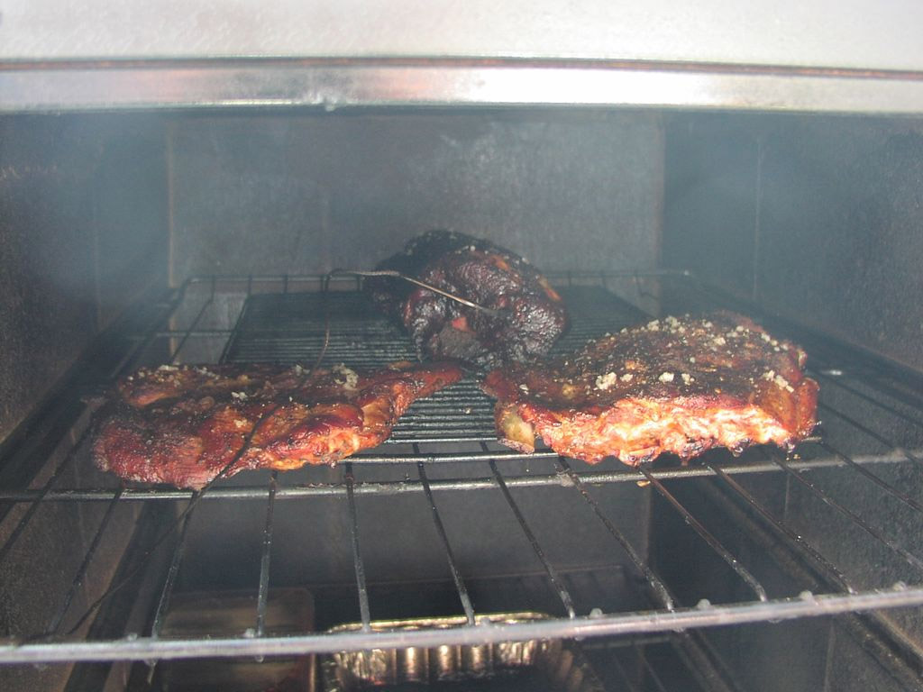 J'ai fumé plusieurs poitrines de bœuf, des omoplates et des côtes de porc et une myriade de carcasses de poulet! Toutes sortes de collations - des poivrons farcis de bacon et de crevettes aux légumes grillés, fruits, maïs, pommes de terre! Tout se passe bien!