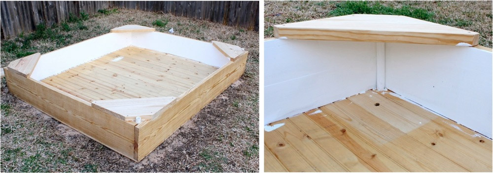 Pour commencer, peignez les parois intérieures du bac à sable avec de la peinture blanche.