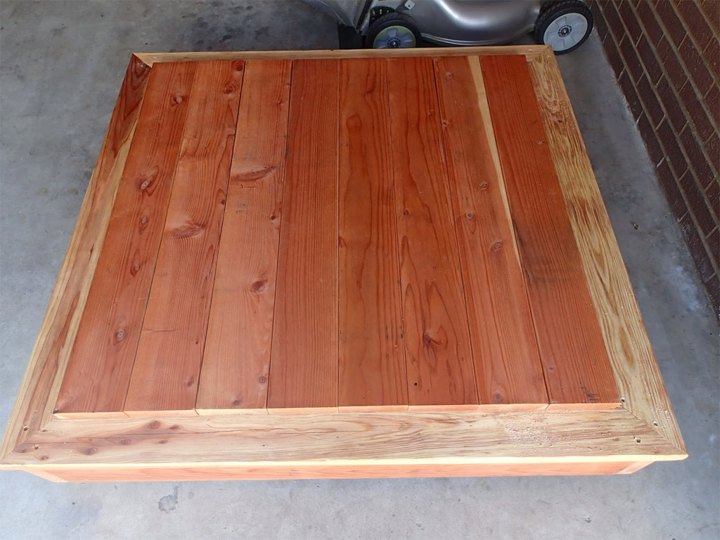Il est maintenant temps de recouvrir les surfaces en bois avec un agent imperméabilisant. J'ai appliqué deux couches de WaterSeal Multi-Surface Waterproofer de Thompson. Il ne reste plus qu'à visser sur le couvercle quelques poignées.