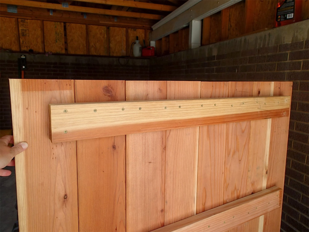 Posez les planches préparées en ligne. Du haut perpendiculairement à eux, placez trois planches de 2,5 × 10 cm (assurez-vous que les traverses s'intègrent bien à l'intérieur du bac à sable) et fixez-les à 4 cm avec des vis autotaraudeuses à chaque planche du couvercle.