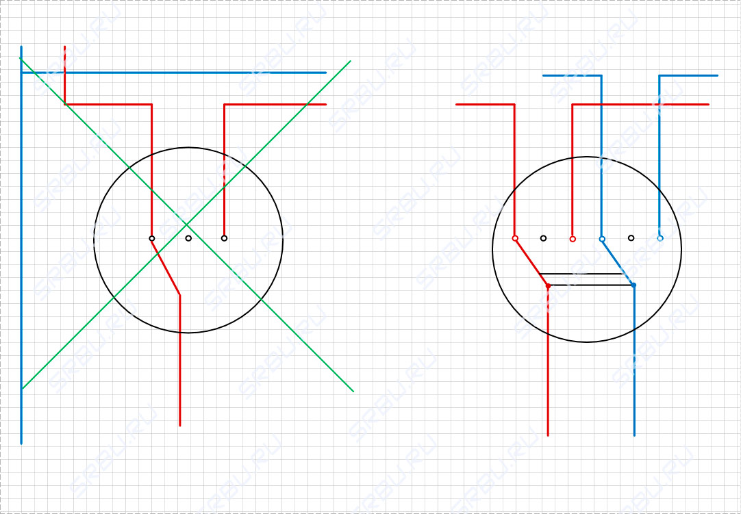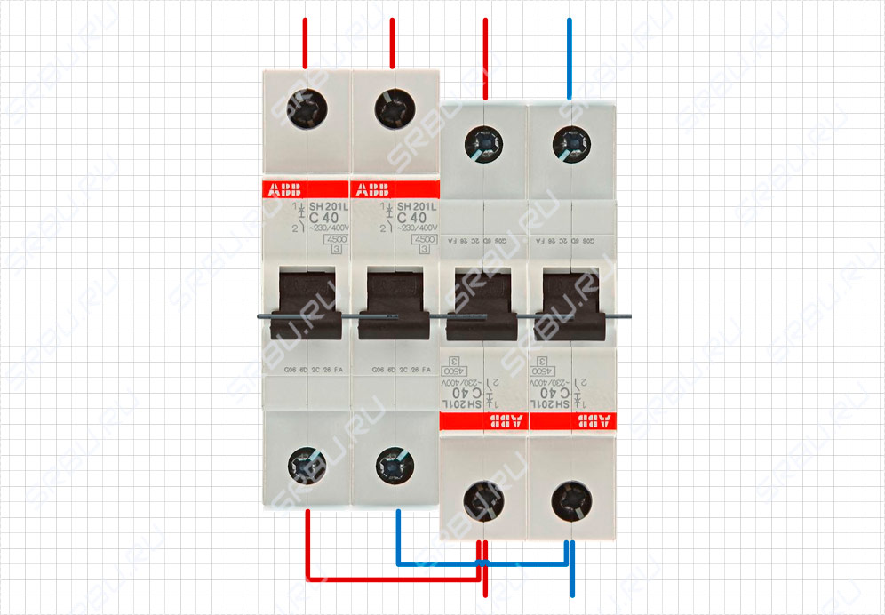 Si vous ne disposez pas d'un interrupteur à trois positions, vous pouvez temporairement créer un dispositif de croisement à deux positions à partir de deux machines à deux pôles. Il est conseillé de les prendre du même fabricant et de la même valeur nominale afin que les tailles correspondent. Les machines doivent être installées à proximité, mais l'une d'elles doit être retournée et les clés doivent être fixées ensemble - pour cela, les fabricants ont prévu des trous pour les broches.