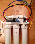 Je l'ai installé sous l'évier, je ne dirai pas l'endroit, ce qui prend beaucoup. Le processus n'est pas compliqué, si vous l'abordez judicieusement. Les cartouches changent rapidement, cela ne prend pas plus de 10 minutes. Je les change en six mois. Au total, il y en a 3 - c'est un filtre à charbon, un élément mécanique et filtrant.