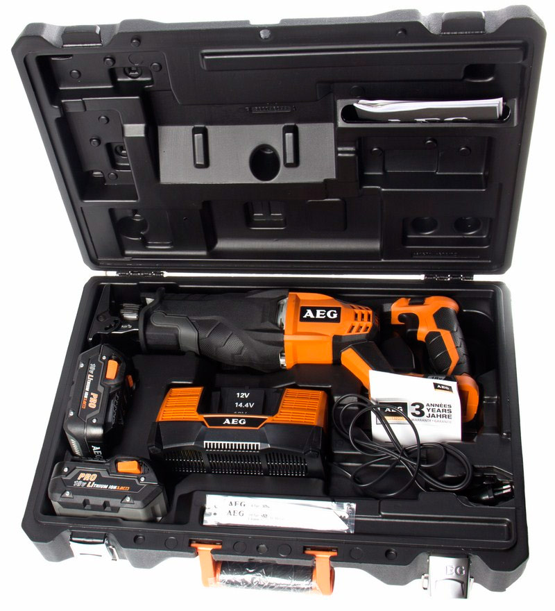 Une caractéristique de ce modèle est immédiatement visible par son nom - il est compact. La longueur de la scie alternative est de 380 mm et il est pratique de la transporter avec vous. Le produit est déjà livré avec deux batteries d'une capacité de 2 mA / h. Une valise est fournie pour le transport. Le nombre de coups est réglable de 0 à 3100 par minute.