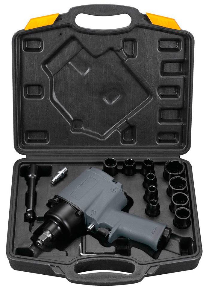 Conclusion La clé pneumatique se caractérise par une force de couple accrue de 920 Nm et un mécanisme de choc Marteau jumeau. Il est pratique à utiliser pour démonter des structures et des mécanismes dans un atelier fixe. Il est possible de travailler sur la route avec le compresseur connecté au générateur.