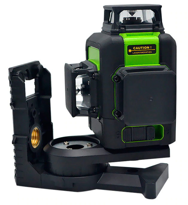 Un grand niveau professionnel avec la possibilité de construire 12 lignes: bat le périmètre et deux plans circulaires sur deux murs en même temps. Les blocs laser sont protégés de manière fiable par des capuchons en caoutchouc.