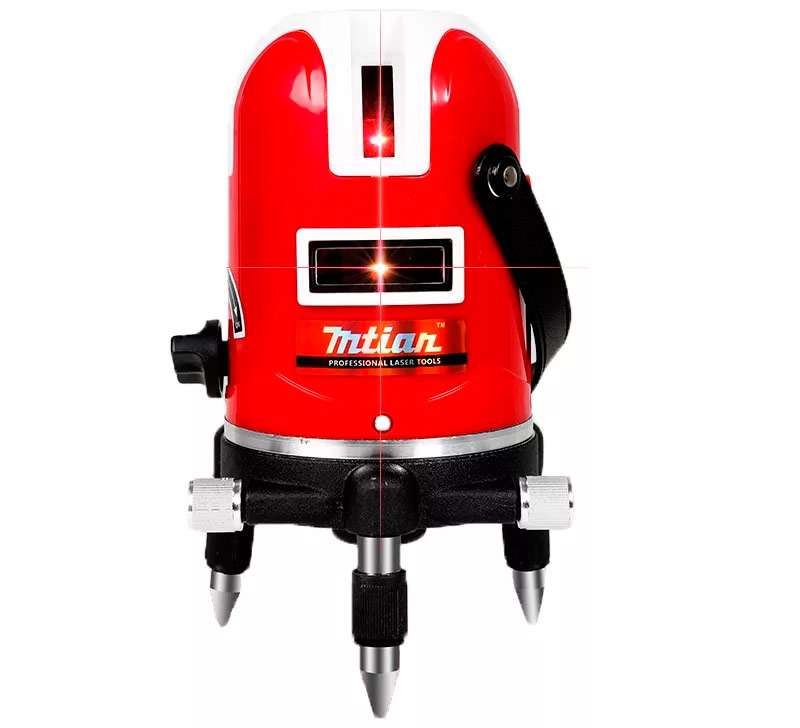 Niveau cylindrique avec six lentilles pour projeter cinq lignes. Il a un support en aluminium avec des pieds réglables en hauteur.