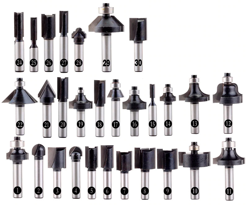 Conclusion L'ensemble est optimal pour un débutant et réalisant des étagères, tiroirs, plinthes à la maison. Six fraises à rainure aideront à créer des évidements de différentes formes pour joindre les cloisons. L'équipement de bord vous permettra de concevoir magnifiquement les bords avec un biseau, une sélection semi-circulaire ou un arrondi.