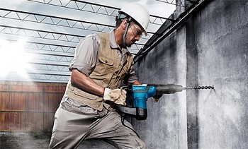 - La conception verticale du moteur et son poids impressionnant compliquent grandement les tâches de perçage et de burinage à une hauteur supérieure au niveau des épaules.