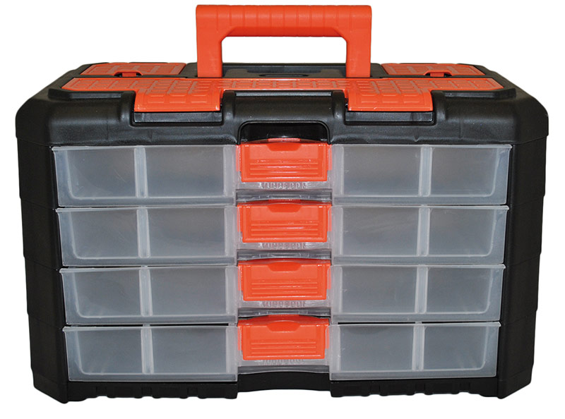 Il s'agit d'un conteneur ouvert, très similaire à un tiroir sans couvercle ou à une palette plate avec des évidements peu profonds.Son principal avantage est la possibilité de trier l'outil dans la séquence souhaitée afin qu'il soit pratique d'y accéder. Le plateau est pratique à transporter d'un endroit à l'autre (avec une poignée) sur une courte distance, mais il est toujours plus adapté au stockage stationnaire.