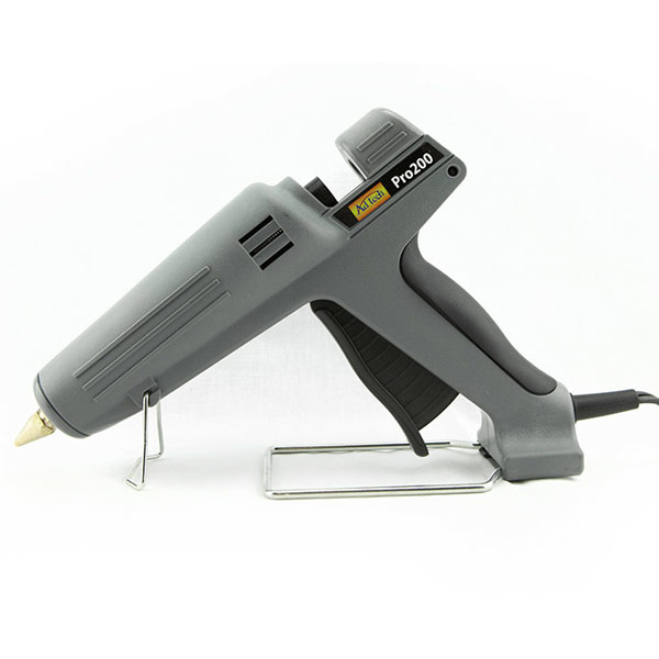 Les appareils sans fil sont également courants, utilisés en conjonction avec une station d'accueil - pendant que le pistolet est dedans, la chambre de chauffe se réchauffe. Un avantage supplémentaire des stations d'accueil est qu'elles ont un récipient pour recueillir la colle qui s'écoule un peu de la buse.