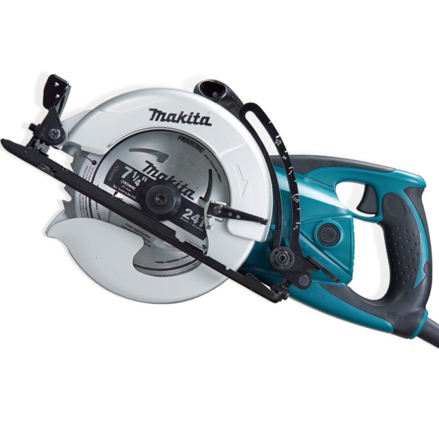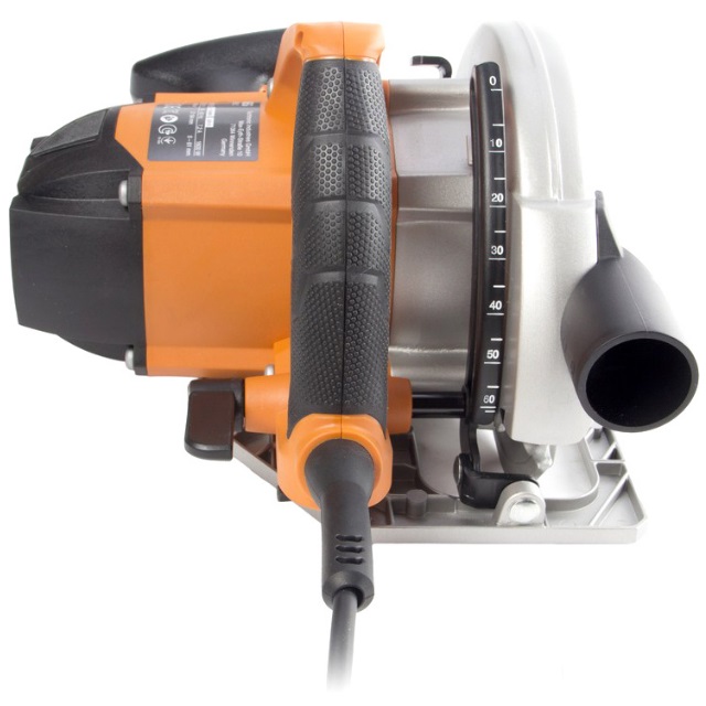 Une scie circulaire professionnelle avec un moteur de 1,4 kW qui fait tourner la lame à 5500 tr / min. La scie donne une profondeur de coupe de 70 mm et lorsque la lame est inclinée de 45 ° à 50 mm.