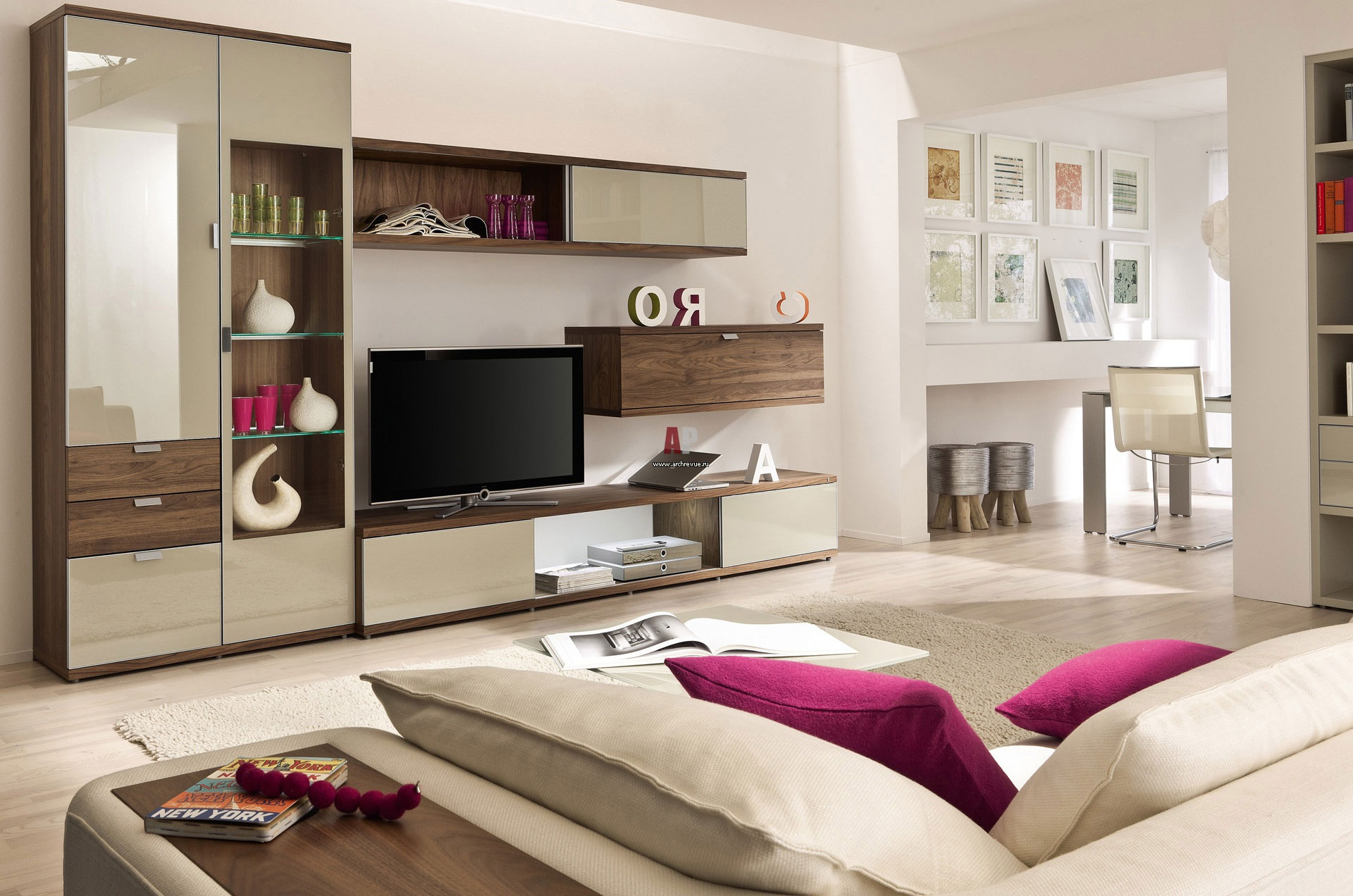 Et encore, un salon dans lequel des solutions design "beige sur beige" sont utilisées. La palette neutre se concentre à la fois sur les lignes claires des meubles et sur les taches de couleurs vives des étagères.