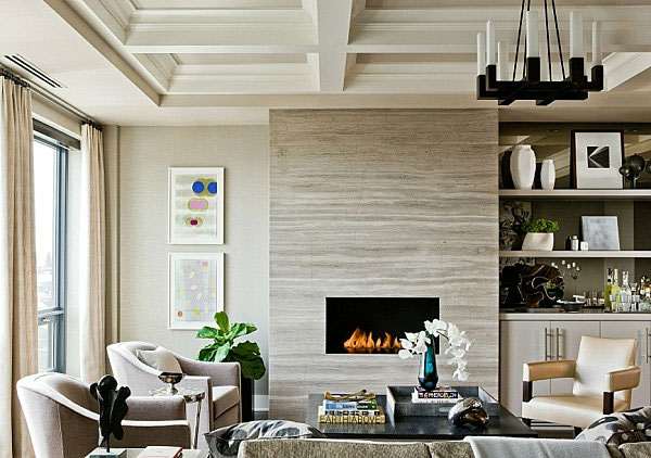 Quoi de mieux que le beige? Seulement quelques nuances de beige! Des rideaux, des fauteuils, des murs et un tapis sont combinés à l'intérieur ci-dessous, où l'on retrouve le traditionnel et le moderniste. L'intérieur est complété par une peinture moderne qui ajoute de la couleur et améliore en même temps les tons neutres de l'espace de la pièce.