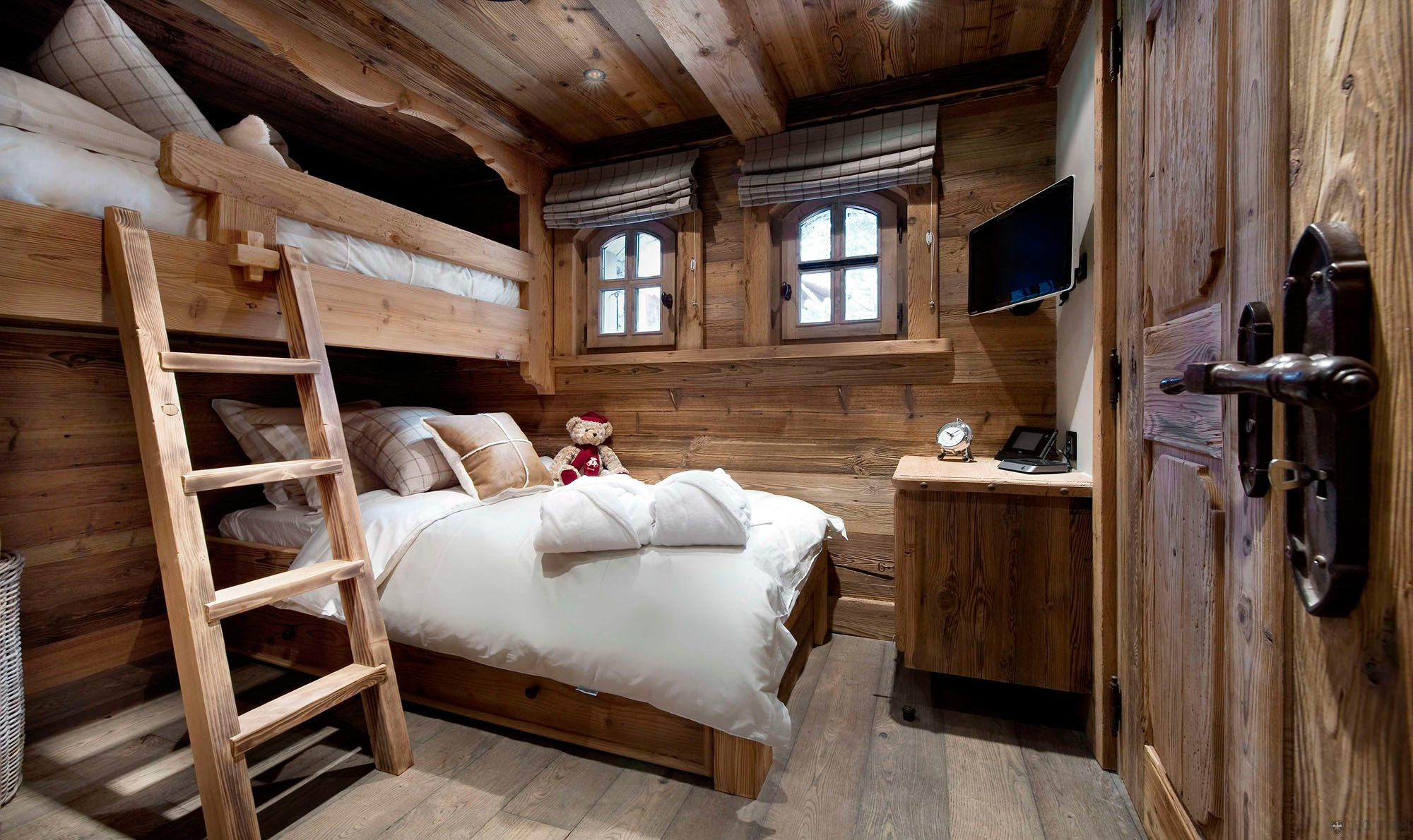 Les chalets alpins ont souvent des intérieurs blancs ou très lumineux. Cela s'applique aux murs, aux meubles et à la décoration. L'impression de l'intérieur nord. Il y a peu d'éléments décoratifs, seules les choses nécessaires sont arrangées.