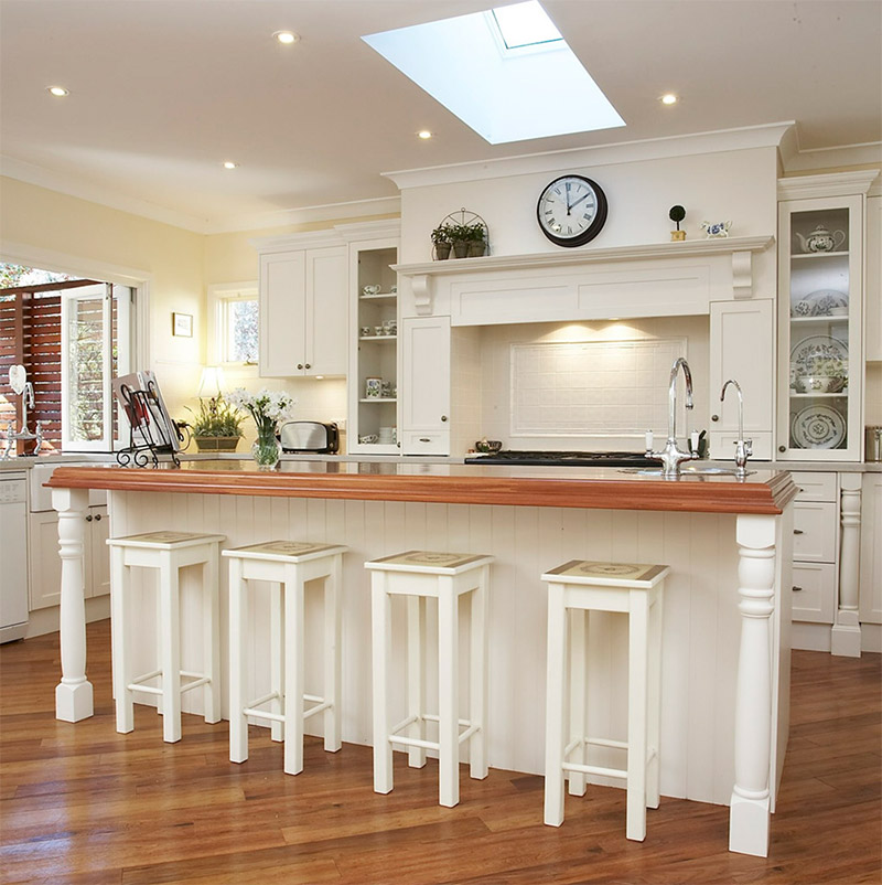 - Des bancs dans la cuisine au lieu de chaises;