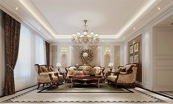 Le coin salon de cette photo représente l'approche française du mobilier. Les chaises rembourrées avec accoudoirs, une table et des étagères fusionnent dans une harmonie sophistiquée, reliées par une palette de couleurs commune de nuances blanc pâle et gris bleuâtre. Ces meubles ont des boucles décoratives, ce qui les élève au-dessus du strict caractère pratique, mais leur élégance ne peut en aucun cas être délibérément ostentatoire ou exagérée.
