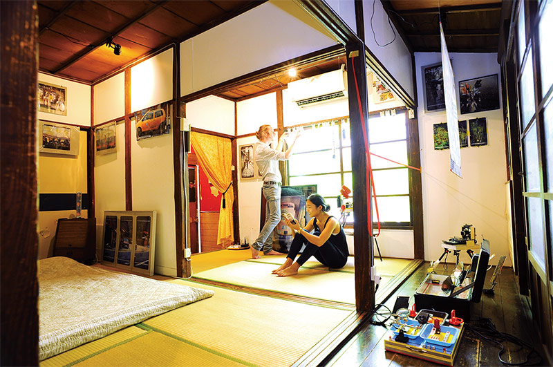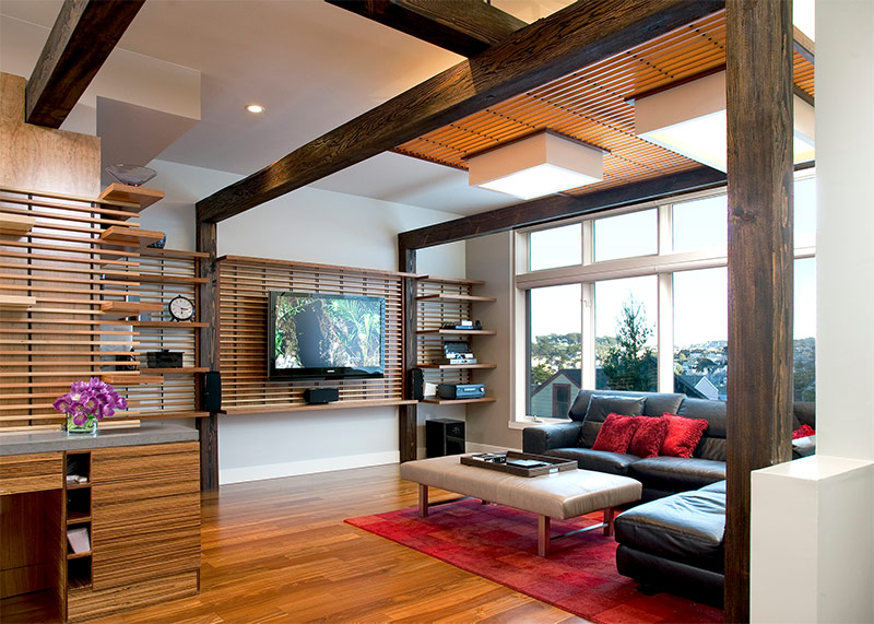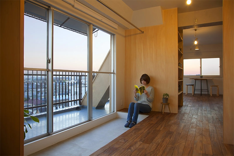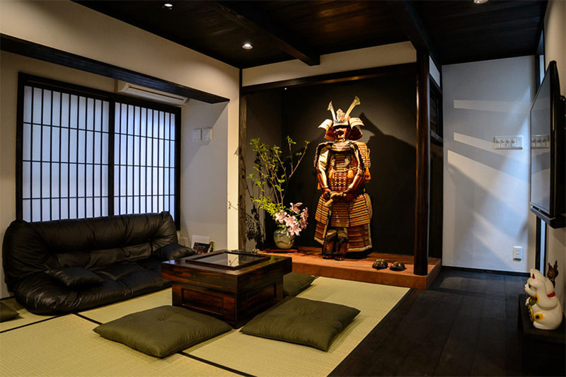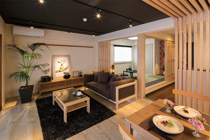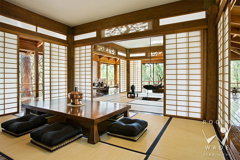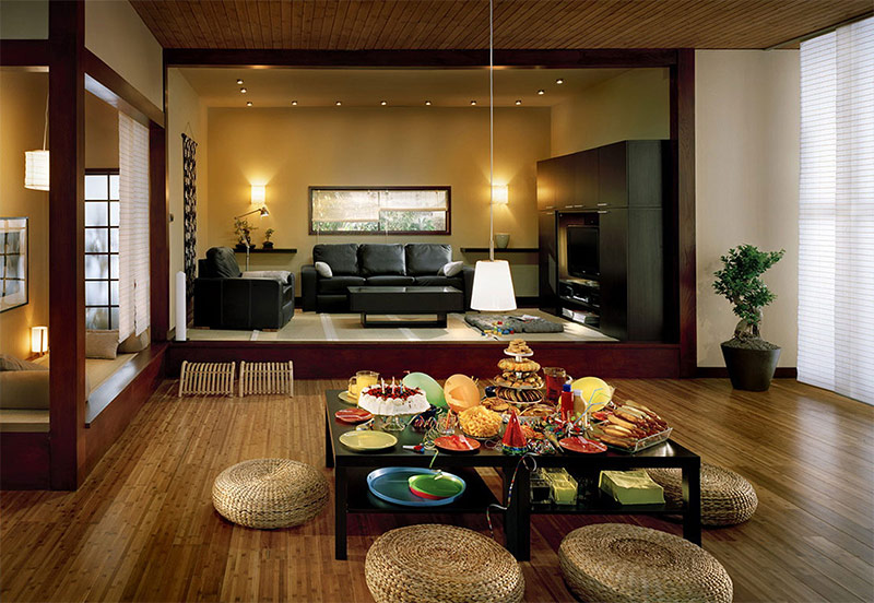 6. Pour désigner des pièces de vie utilisant des cloisons en bambou ou en papier racial sur un cadre en bois, les murs sont supprimés. Dans l'espace de vie devrait être autant d'espace libre et moins de choses.