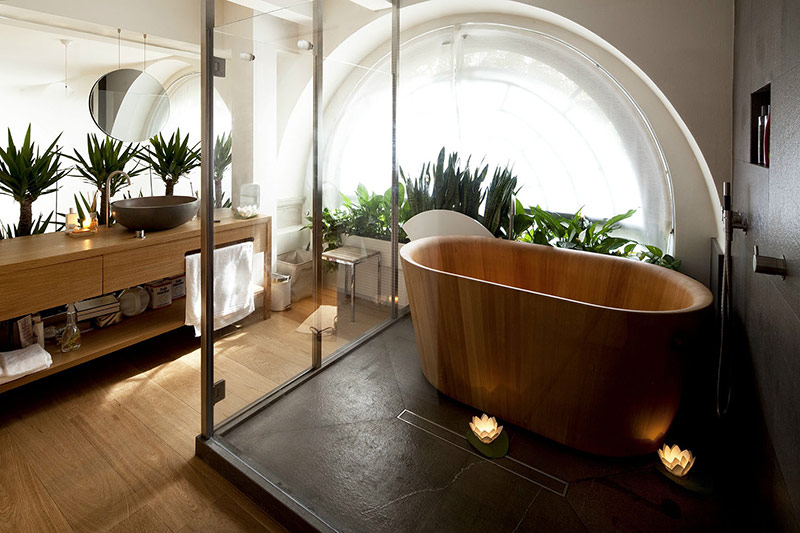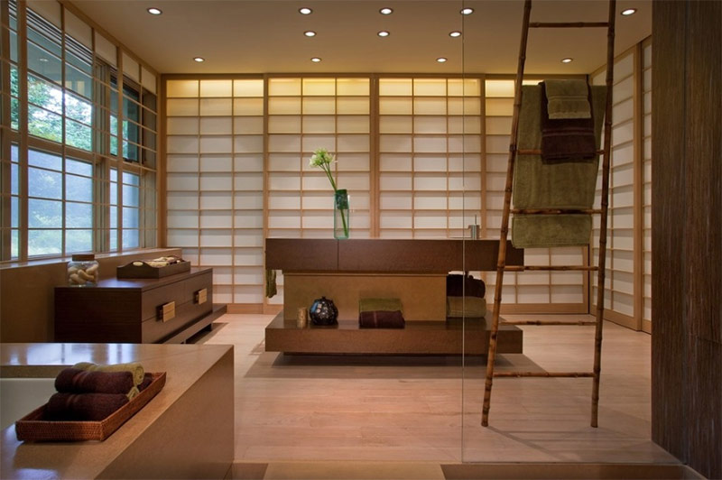 - pour la salle de bain, les lavabos sont souvent sélectionnés sous la forme d'une vasque et d'une baignoire traditionnelle en bois ofuro (ou de forme similaire).