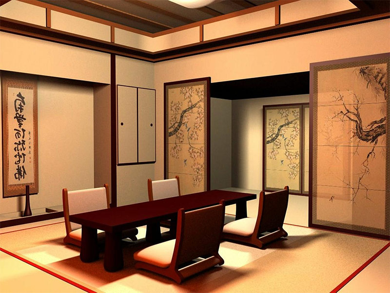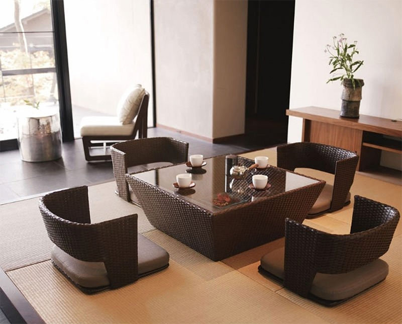 Le design intérieur japonais convient à une personne assise, contemplant son monde intérieur, méditant, se reposant à la maison de l'agitation du monde extérieur. Par conséquent, tous les meubles sont caractérisés par un inconvénient. Comme si les meubles en bois ordinaires avaient leurs pieds garnis et posés au sol. Le nombre de meubles est limité, moins il y en a, mieux c'est. Il ne doit rien y avoir de superflu dans la pièce.