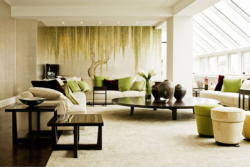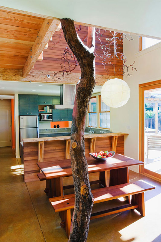 Le mode de vie écologique, le désir de vivre en unité avec la nature selon ses lois et de mener un style de vie créatif, ont influencé le développement de la tendance écologique dans l'architecture, la peinture, la poésie et la décoration intérieure. Ainsi, l'architecte finlandais Alvar Aalto a conçu des bâtiments résidentiels intéressants. Il a construit ses maisons sur le site d'arbres vivants. Ils n'étaient pas coupés à la racine, mais les murs étaient érigés autour du tronc. Bien sûr, le décor d'une telle maison était également censé parler de respect pour la nature par l'homme. Par conséquent, pour créer l'intérieur des surfaces en bois utilisées, du verre qui transmet la lumière naturelle, beaucoup de fleurs fraîches.