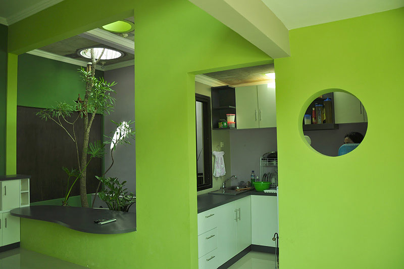 La combinaison de murs blanchis à la chaux et verts.