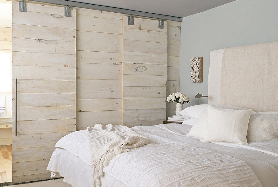 - décoration de hauts plafonds blanchis avec poutres en bois.
