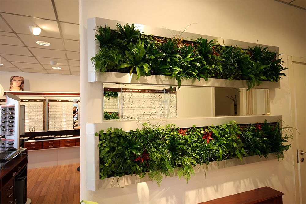 Un mur paysager animé est spectaculaire. Il est équipé de réservoirs d'atterrissage, de systèmes de drainage, d'irrigation et d'éclairage. Leur travail bien établi assure la croissance active des plantes plantées sur toute la surface du mur. L'organisation et l'entretien d'un tel mur nécessiteront certains investissements financiers et du temps. Cependant, le résultat en vaudra la peine. En regardant la verdure, qui a complètement rempli la verticale du mur, vous ressentez une vague de joie et un sentiment d'harmonie avec le monde vient. De plus, cette splendeur verte remplira la pièce de fraîcheur et d'oxygène.