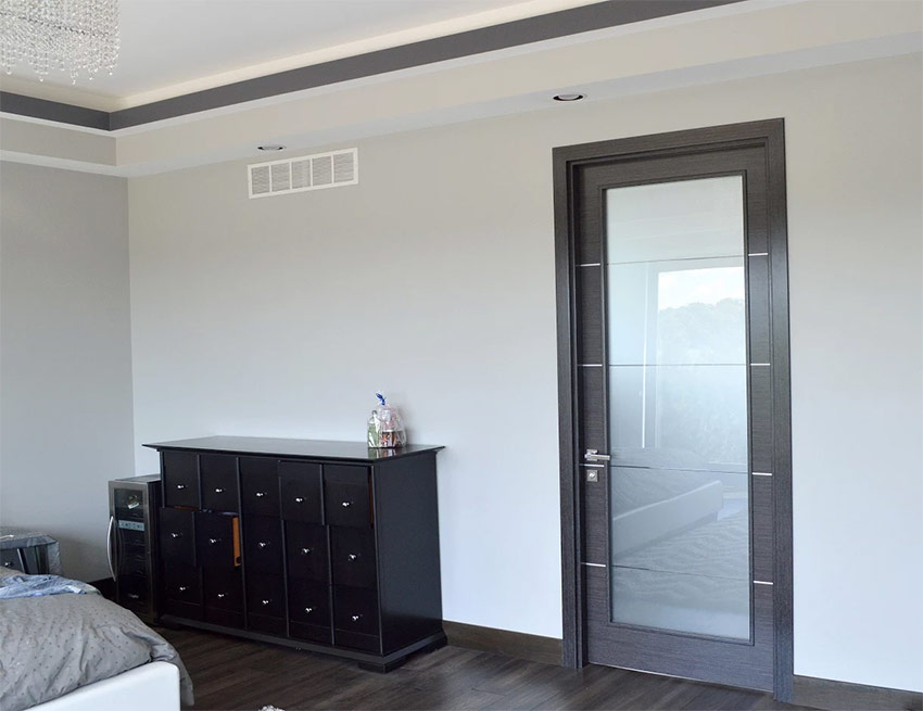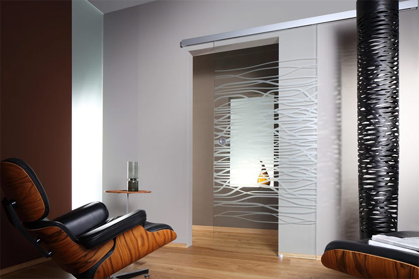 Pour souligner l'individualité de la pièce, vous pouvez utiliser du verre décoratif à l'intérieur: coloré, avec un motif, mat, vitrail, avec un motif mat sablé et sculpture d'art. Les portes faites d'un tel matériau changent complètement l'apparence de la pièce. En même temps, ils résistent à la charge, ont des propriétés d'insonorisation et de décoration pas pire que celles en bois.
