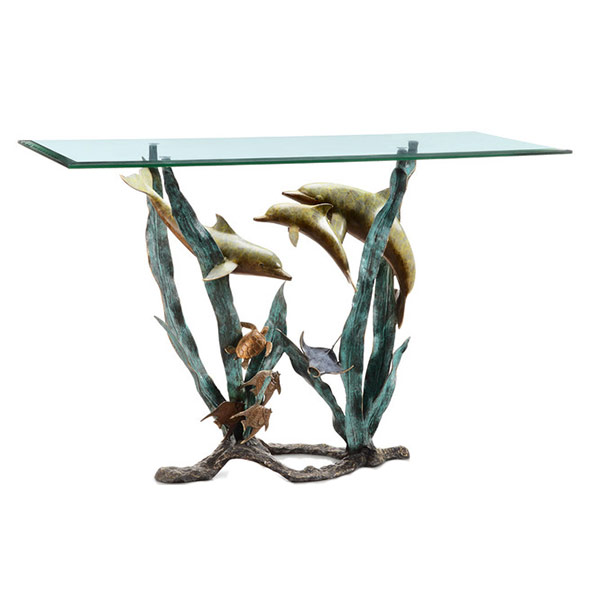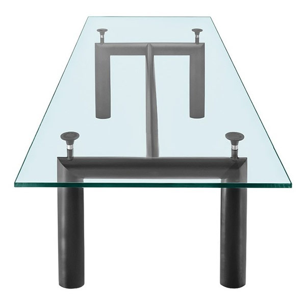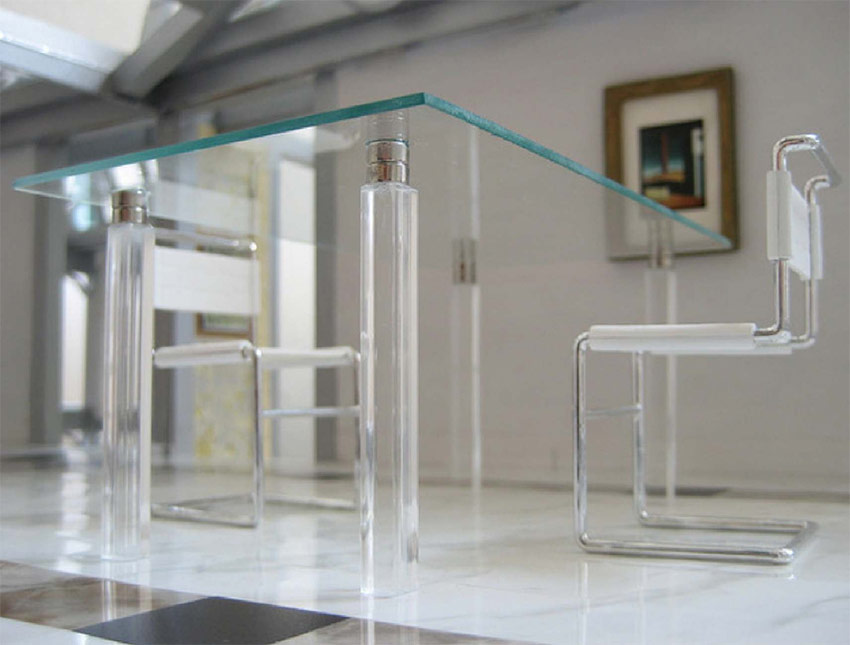 C'est l'un des meubles les plus populaires et les plus populaires depuis longtemps. Les tables sont faites de café, de thé, de salle à manger, rondes et carrées, entièrement en verre ou uniquement avec un plateau transparent. Ils sont présentables à l'extérieur, respectueux de l'environnement, ont une forte fonction décorative. Cependant, ils nécessitent un soin approprié avec des produits de nettoyage et un chiffon doux. Après tout, les empreintes digitales, la nourriture, les boissons peuvent rester sur le verre. Si la maison a de petits enfants, vous ne devez pas choisir une table instable sur le support central. Pendant le jeu, l'enfant peut l'accrocher et le renverser. Dans ce cas, une table en bois massif à quatre pieds avec un plan de travail transparent est plus appropriée.