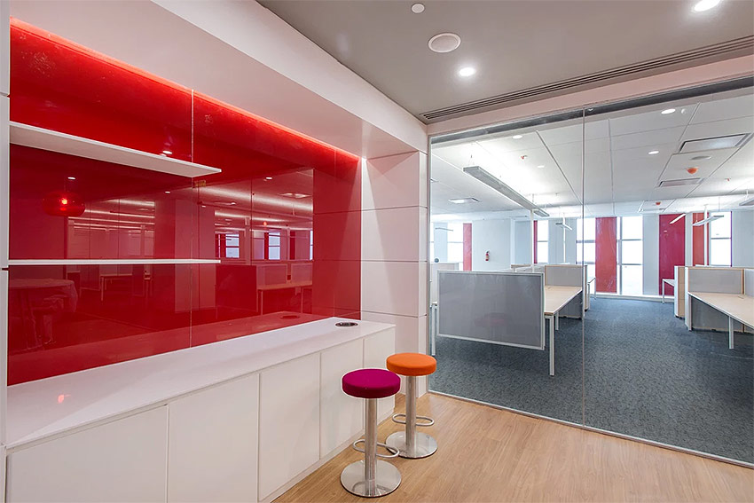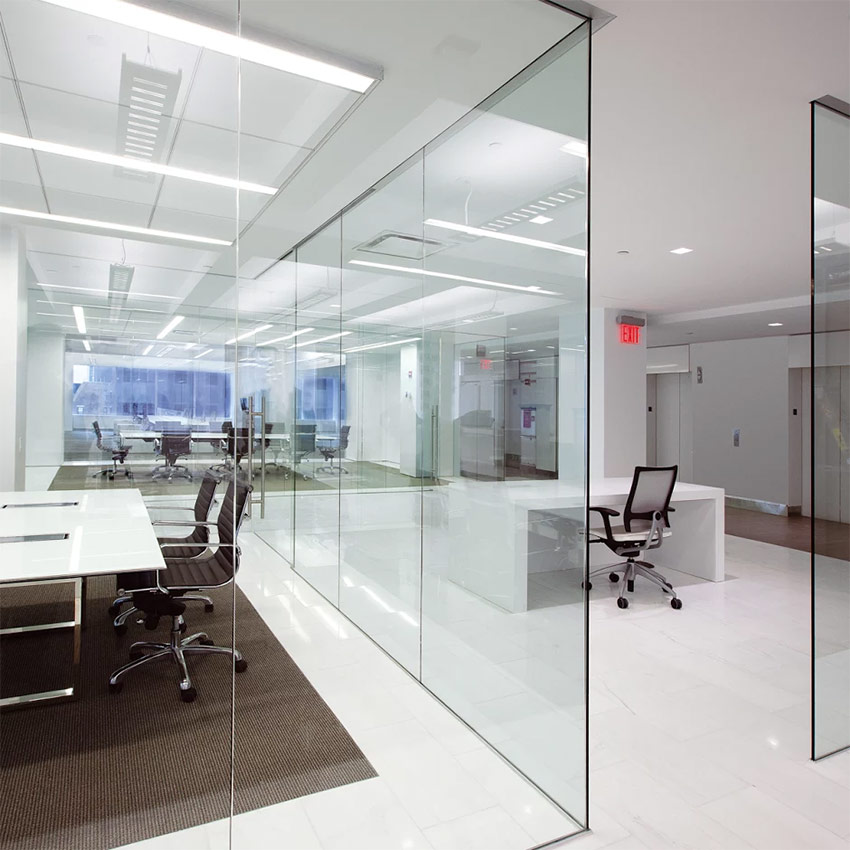 Des cloisons transparentes sont demandées pour le zonage des bureaux. Cette idée a d'abord été utilisée par des designers américains. Ils ont nettoyé les murs sur tout le plancher de production, ne laissant que des éléments de support. Ils ont utilisé la lumière d'un mur équipé de fenêtres pour éclairer tout l'espace de bureau sans l'interrompre avec une cloison dense, mais en le séparant avec des structures en verre transparent. Ainsi, chaque employé a reçu un espace de travail personnel, mais se sentait toujours comme faisant partie d'une seule équipe.