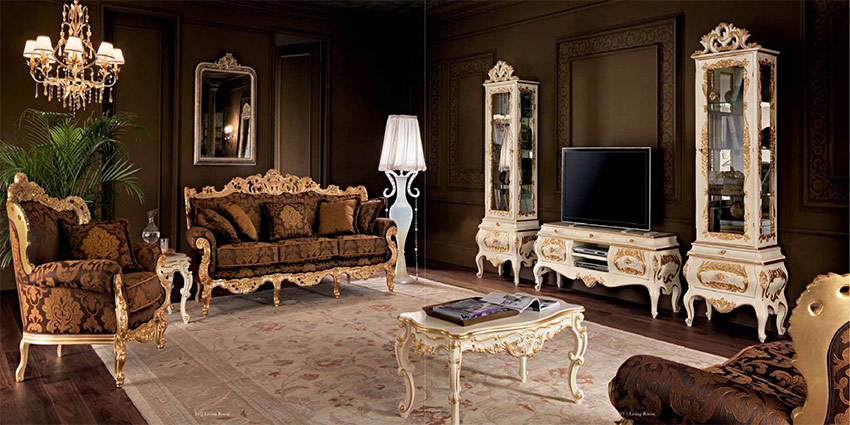 Le plus souvent, le plafond est simplement blanchi à la chaux ou peint avec de la peinture claire. Pour lui donner un aspect fini, il est orné de moulures en stuc le long du périmètre (un écho des classiques et du baroque). Les corniches sont peintes pour correspondre aux murs ou au plafond, parfois dorées.