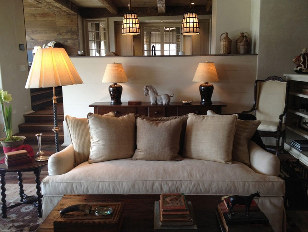 Pour organiser correctement l'éclairage dans l'esprit de l'Angleterre coloniale, vous devez choisir plusieurs options d'éclairage doux diffus pour chaque zone. Cette technique est particulièrement pertinente pour le salon. Il illumine séparément la zone de lecture, le goûter du soir et les jeux de société. Plusieurs lampadaires sont installés à côté du canapé et des fauteuils, une applique est suspendue au-dessus d'eux. Dans le salon, il est également habituel d'accrocher un grand lustre avec des pendentifs en verre. Cependant, cette technique ne peut être utilisée qu'avec de hauts plafonds.