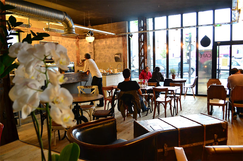 Charmant café parisien avec une atmosphère ancienne et confortable.