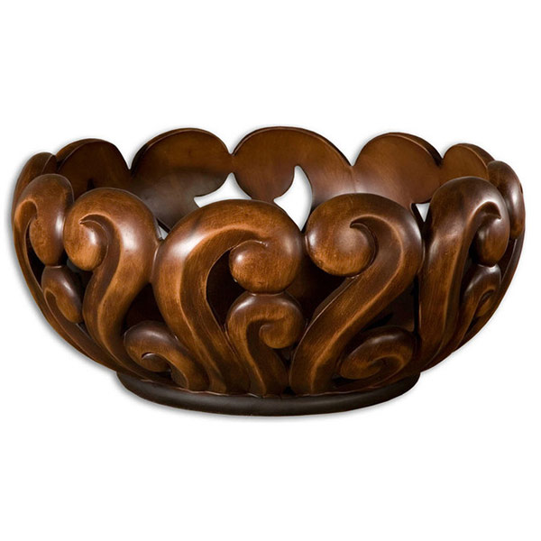 La chambre est décorée avec des meubles en bois, décorée de sculptures artistiques.