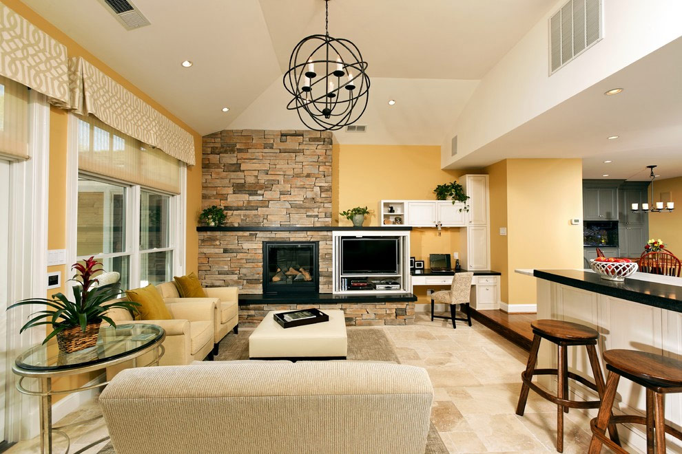 Il ne fait aucun doute que les cheminées en pierre améliorent considérablement l'apparence du salon.Si vous aimez le pavé typique des vieux bâtiments européens, utilisez-le pour cloisonner le mur où se trouve votre cheminée. La surface lisse, naturelle pour cette pierre, et une variété de formes sont bien combinées avec un style traditionnel ou campagnard.