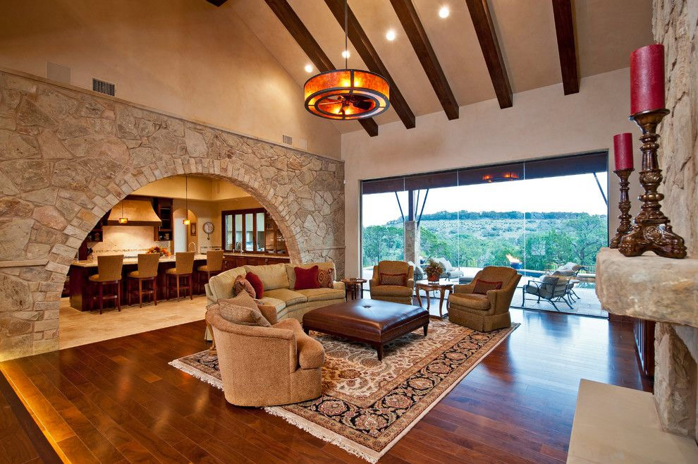 Habillez les murs d'accent avec de la pierre ou du placage de pierre. Sans une telle décoration, ces colonnes et murs existeraient et continueraient même de remplir leurs fonctions structurelles, mais seraient complètement invisibles. La pierre donne à ce salon de la chaleur et un caractère spécial - les surfaces peintes des murs ne peuvent pas le faire.