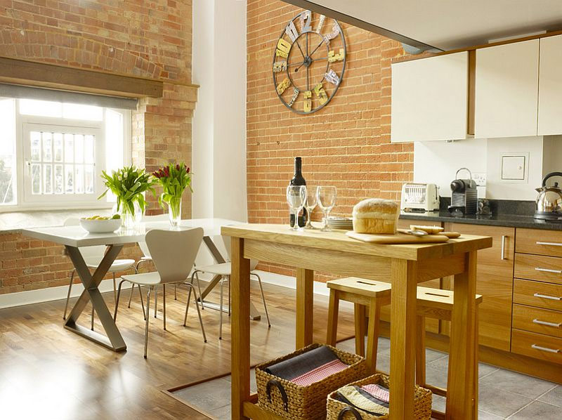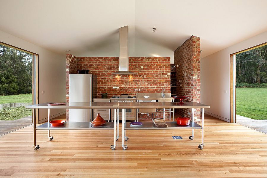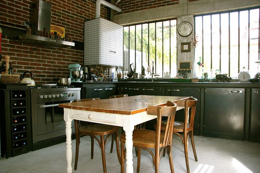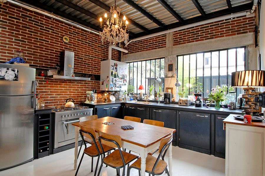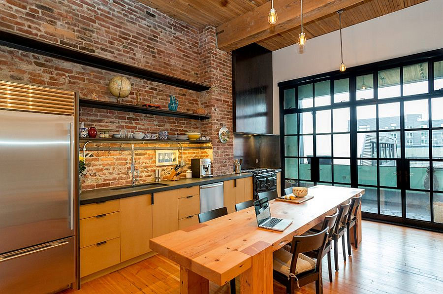 La brique et l'acier contribuent à façonner la cuisine de style loft parfaite (par Jane Kim Design).