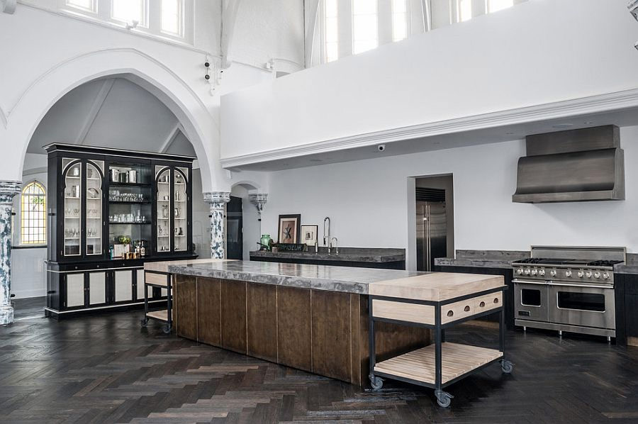 Un toit vitré permet au soleil de remplir cette cuisine luxueuse (de Marchi Kitchens).