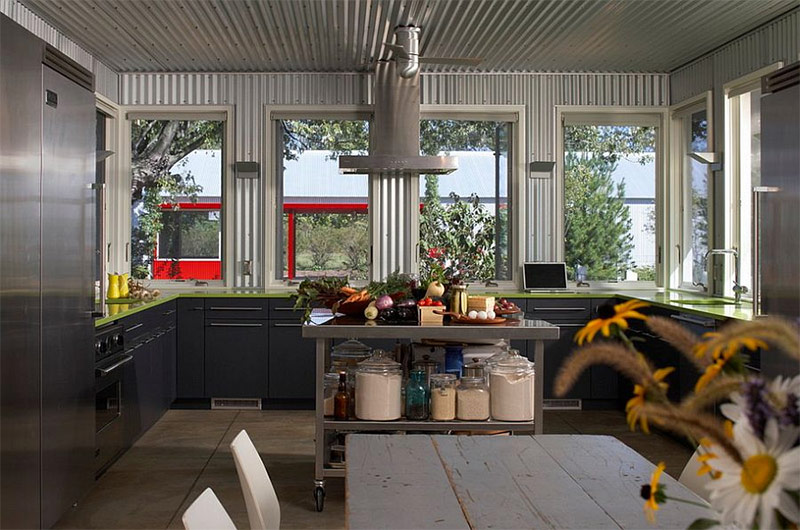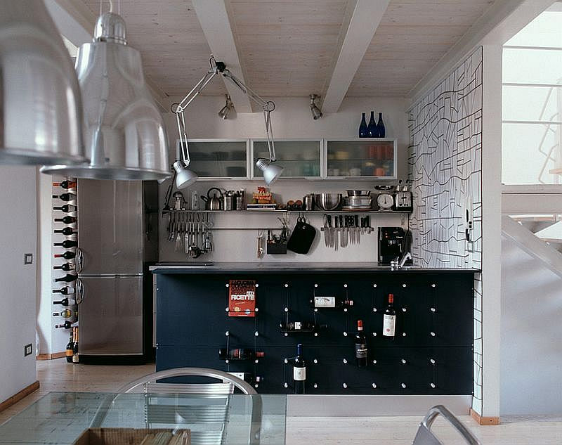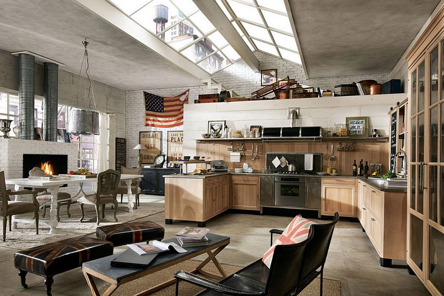 Maison de style loft avec une grande cuisine qui s'intègre parfaitement dans l'atmosphère générale (de Stosa Cucine).
