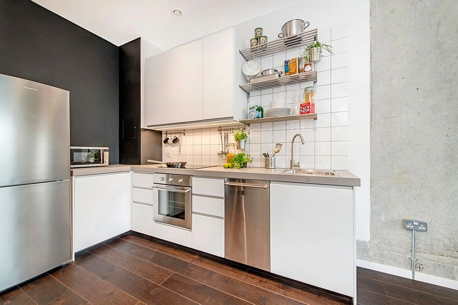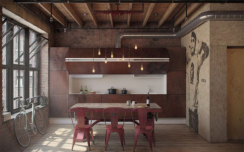 Étant donné que, comme exemples de mise en œuvre du style loft, nous voyons généralement de grandes surfaces avec des fenêtres géantes et des plafonds à double hauteur, il semble que ce style ne soit pas destiné aux petites cuisines. Ceci est complètement faux, car l'efficacité, l'économie et l'ergonomie sont les principes déterminants du style industriel, ce qui le rend idéal pour les petites pièces.