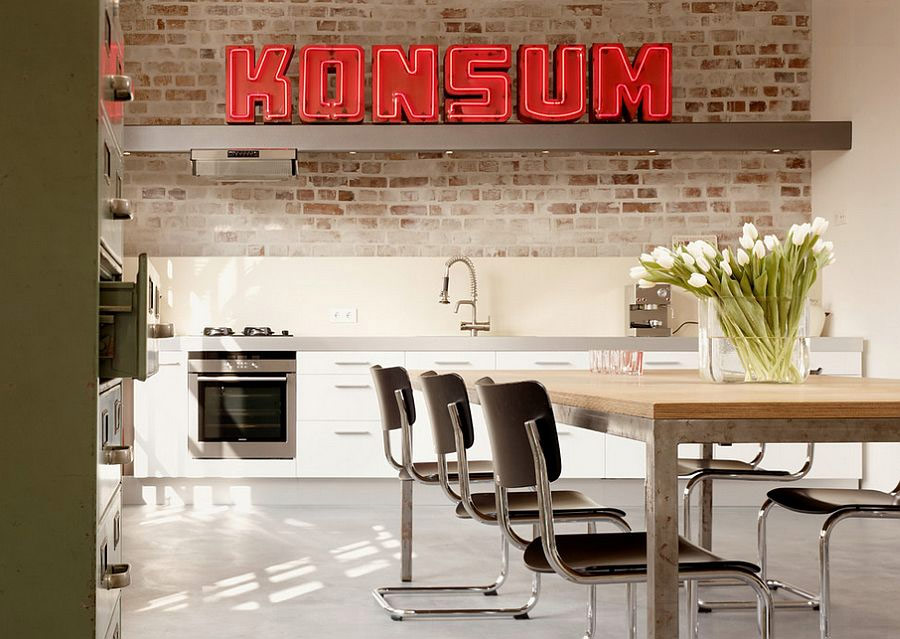 Il fallait sûrement voir une cuisine de style loft vraiment inhabituelle et se demander: comment son propriétaire a-t-il réussi à créer un espace aussi unique et envoûtant? Il va sans dire que la sélection correcte de décors et d'accessoires qui correspondent bien au style est loin d'être la première de la liste des actions qui ont permis d'atteindre un tel résultat. Mais en même temps, c'est le décor qui donne à votre cuisine une individualité qui reflète votre propre goût, la rend différente des autres cuisines et ne vous permet pas de glisser vers les normes généralement acceptées.